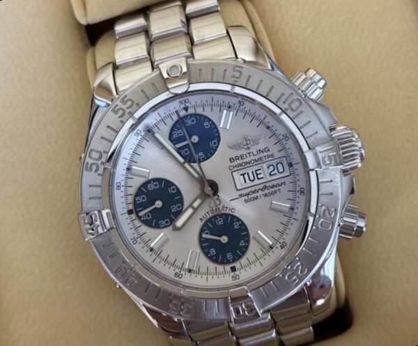 ブログをご覧いただきありがとうございます。最高額ドットコム熊本店にて、熊本市西区上熊本のお客様からブライトリングのスーパーオーシャンの腕時計をお買取りさせて頂きました。BREITLINGの腕時計は今も昔も変わらず人気な腕時計です!こちらのお品は状態はよく、付属や箱も揃っており高値お取引させて頂きました!只今、最高額ドットコム熊本店ではブランド腕時計の買取を集中強化中です。当店は海外にも販売ルートがありお客様のお品を世界基準でのお査定が可能です。いらなくなった、時計や、壊れた時計はございませんか?当店がどこよりも高くお買取り致します。お気軽にご相談くださいませ。熊本店では腕時計の買取を国内最高額のお買取に挑戦中です。オーデマピゲ・バシュロンコンスタンタン・パティックフィリップ・ロレックス・オメガ・リシャールミル・フランクミューラー・ブライトリング・シャネル・セイコー・ウブロ・ブルガリ・パネライなどの高級腕時計を高額買取致します。熊本店では腕時計はもちろん、貴金属やブランド品・楽器・骨董品・カメラ・お酒・金券なども高額買取致します。只今査定額で最大35%UPキャンペーン中です。この機をお見逃しなく。860-0847熊本市中央区上林町1-30マーケットプレイス1-A目の前にパーキングございます。お気軽にご来店くださいませ。